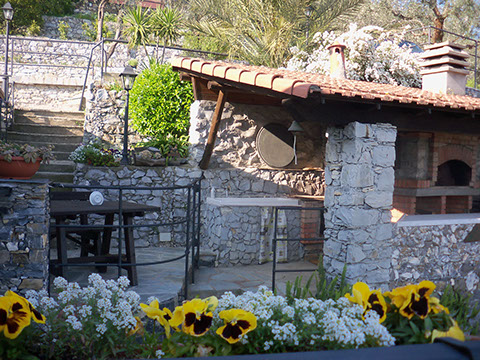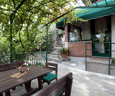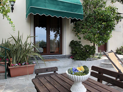 L'appartamento é posizionato al pian terreno della Villa con entrata privata, terrazzo e giardino con tavoli e sedie