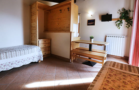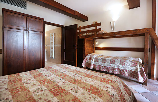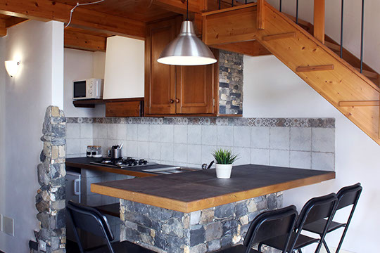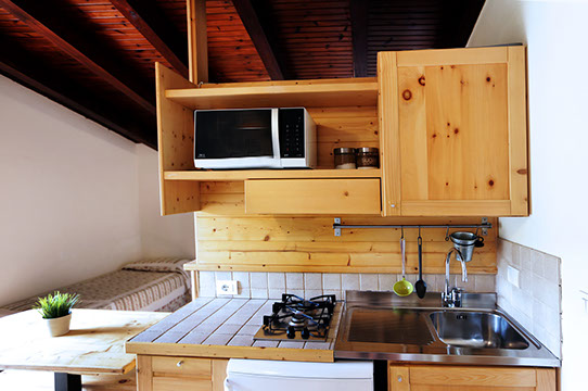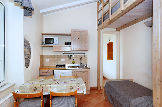 Refurbished, it retains some features of the original architecture and consists of a double bedroom with private bathroom, and a dining/living room with 2 single beds (bunk beds), TV and fully equipped kitchen.