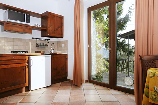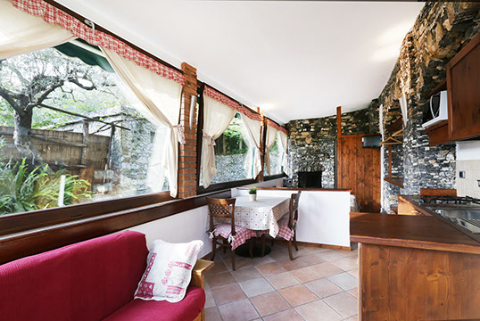 Is a charming studio apartment (about 25 sq m). It retains some features of the original architecture (stone archs) and its many windows almost give guests the impression of being in the garden!