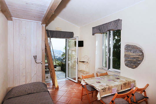 Is a pleasant apartment (about 25 sq m) with a beautiful sea view. Refurbished, it consists of a double bedroom, private bathroom and a dining/living room with 1 single bed, TV and fully equipped kitchen.