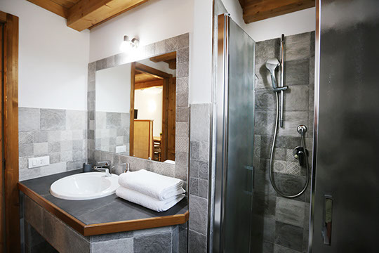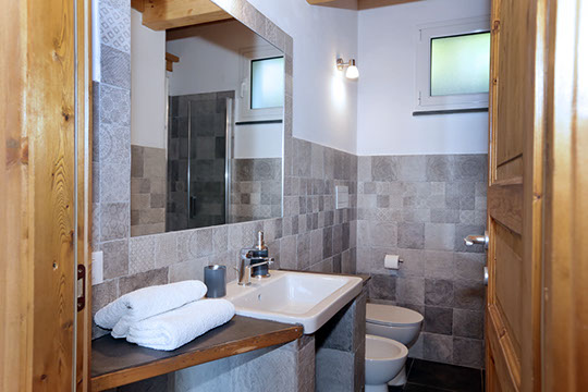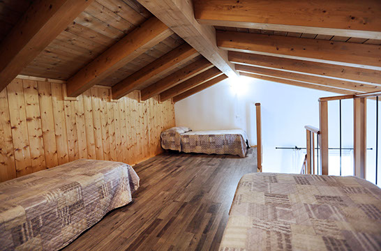 It consist of a dining/living room with kitchen fully equipped, Tv, a big wooden mezzanine with 3 single beds, double room and 2 bathrooms.